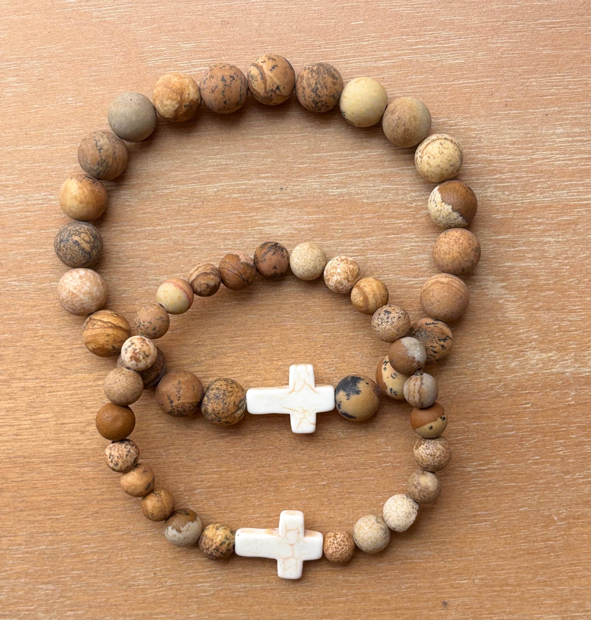 Handmade His & Hers Natural Picture Jasper Cross Stretch Bracelet!