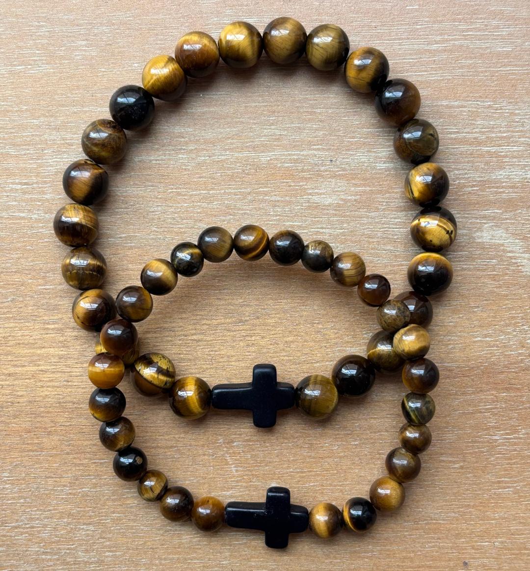 Handmade His & Hers Tiger Eye Cross Stretch Bracelets