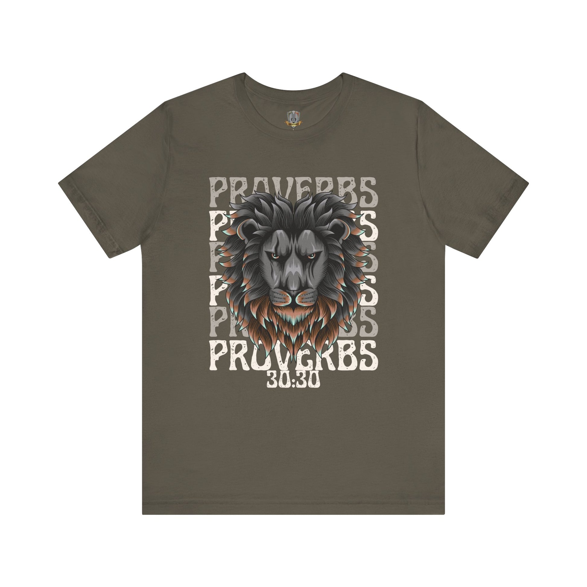 Bold. Fierce. Unshaken. This God Armory T-Shirt features the image of a mighty lion, inspired by Proverbs 30:30